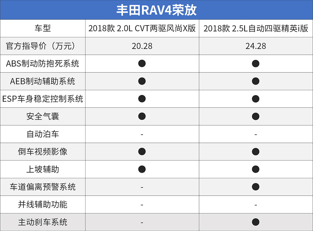 安全配置方面,RAV4荣放该有的配置都得到了下放,但是像车道偏离预警系统这些进一步的安全配置就主要出现在顶配车型上面,入门和中配的车型配备的都只是基本的安全配置,当然了在售价上,安全配置更丰富的顶配车型价格也贵了不少,价格为4万元。