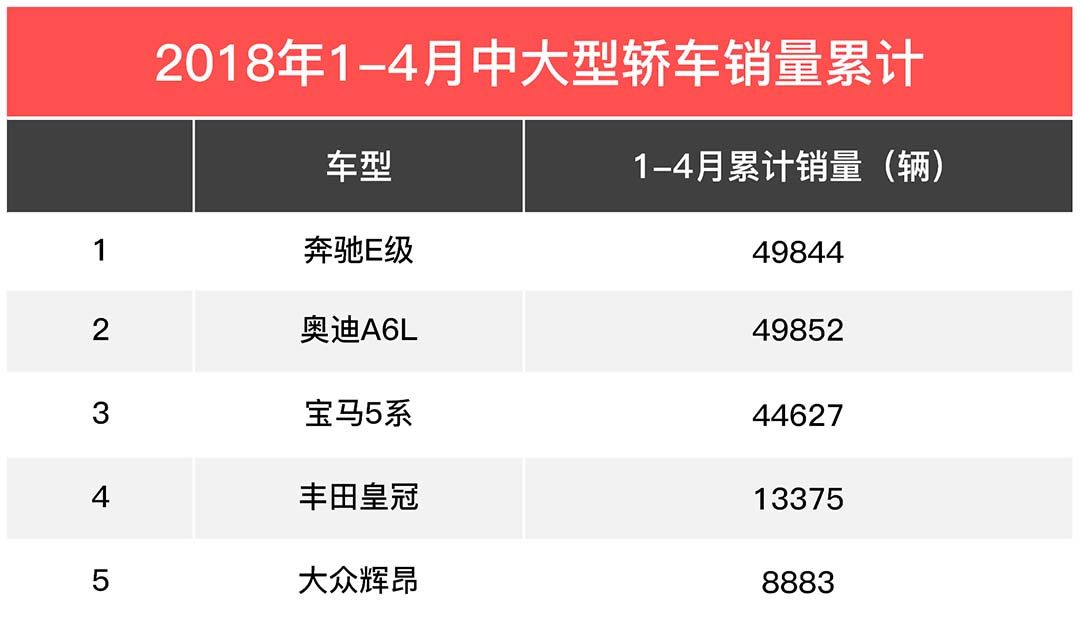 再来看看辉昂,辉昂的销量在18年1-4月中大型轿车累计销量中排到了第七,没有破万,这跟一些豪华品牌相比,可谓是差远了。