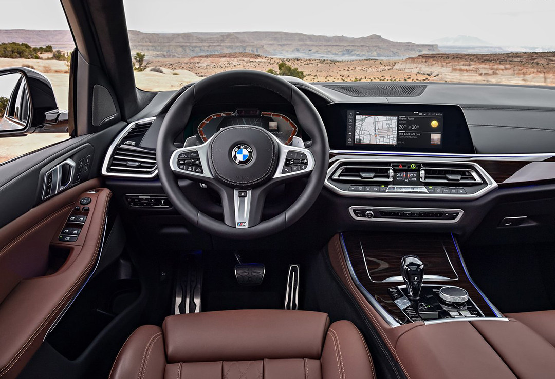 来到车内,新一代X5采用了新的设计风格,中控屏幕与仪表盘相连,略微偏向驾驶者一边,这是一种“驾驶感的表现”。镀铬装饰的线条更加激进,新车将应用新一代宝马iDrive系统,包括全新的换挡杆和控制键,此外空调控制区域位于中央出风口之间,下方为娱乐系统控制区。在科技性和主动安全方面会有很多升级,详细配置方面,我们可以向新5系看齐。