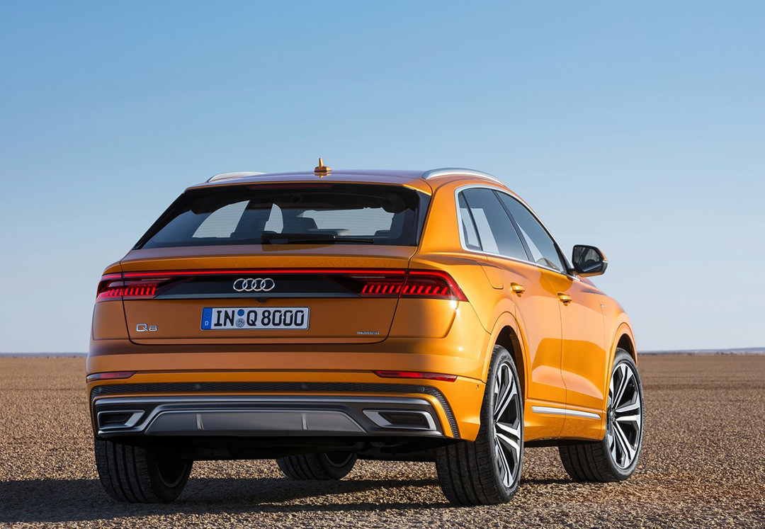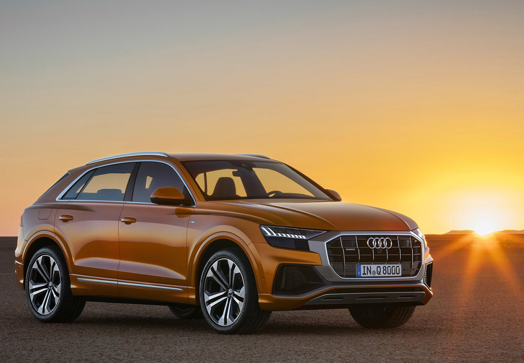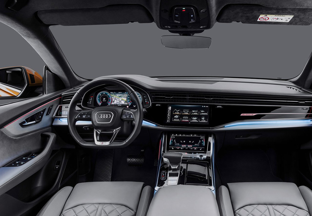 车身尺寸方面,Q8长宽高分别为4986/1995/1705mm,轴距为2987mm。比Q7低矮但风格更为独特,新车会与7月在海外率先上市,预计年内引入国内销售。内饰方面依旧是熟悉的科技奥迪,中控上方是一个10.1英寸的显示屏,用于控制信息娱乐系统和导航系统。下方的8.6英寸显示屏则负责空调以及文本输入等功能。12.3英寸的液晶仪表盘从新一代A4开始,已经成为奥迪新品标配。另外Q8全系车型标配自适应悬挂系统、19英寸轮圈、LED大灯、升级版导航MMI系统和双区自动空调系统。