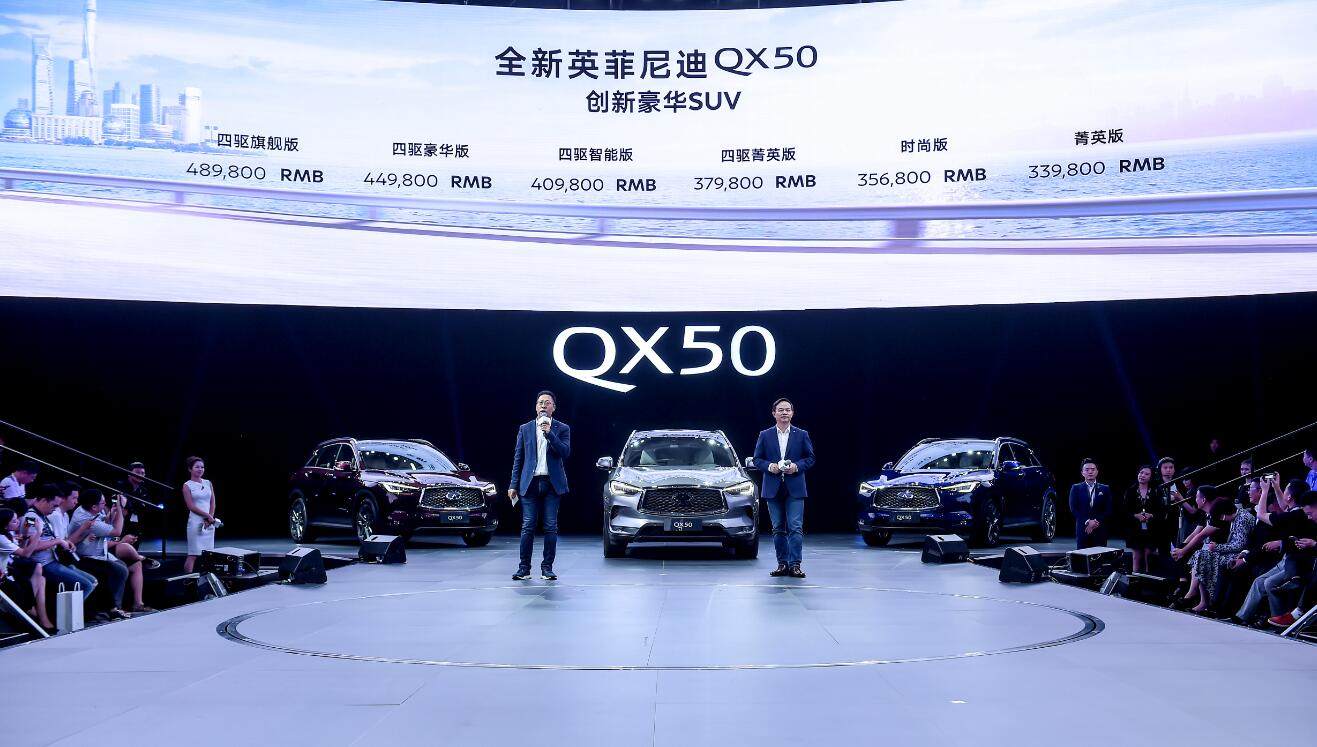 豪华汽车品牌英菲尼迪旗下全新中型豪华SUV QX50在上海中国船舶馆耀目上市。全新英菲尼迪QX50提供2款两驱及4款四驱共6款车型,建议零售价为:33.98万元-48.98万元。