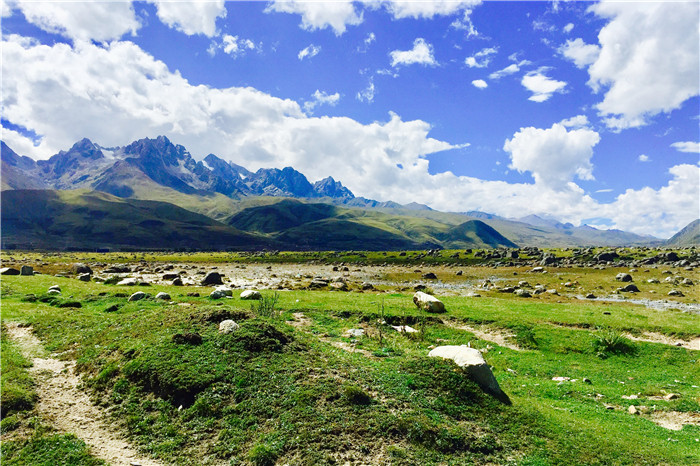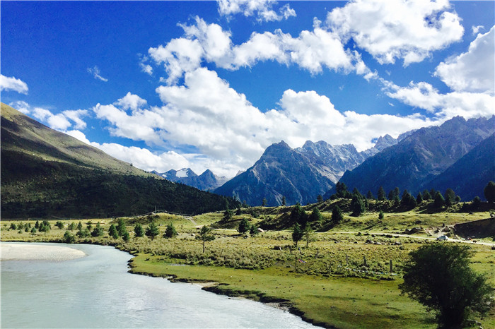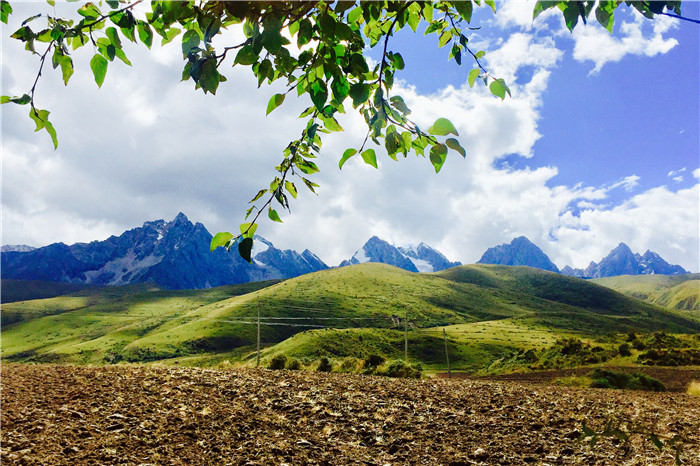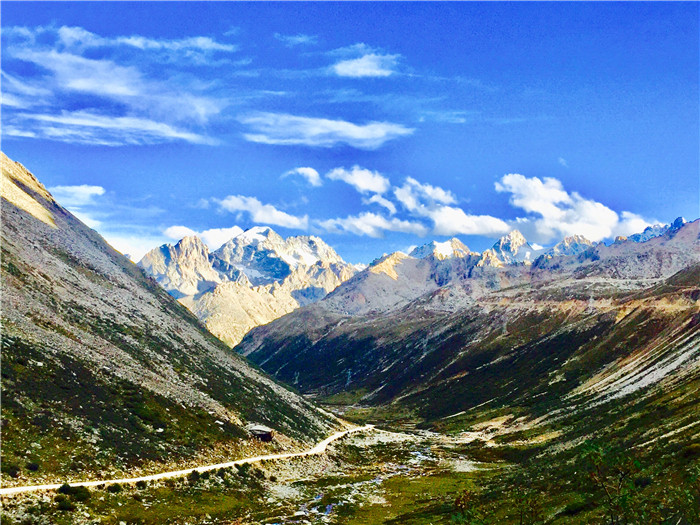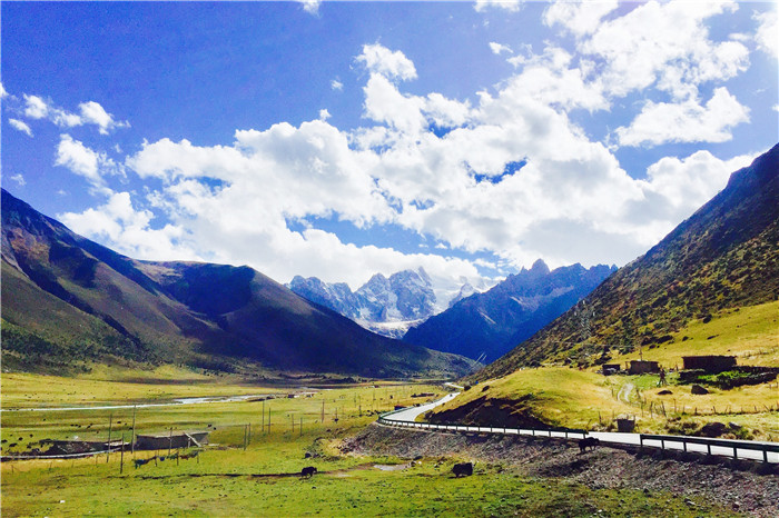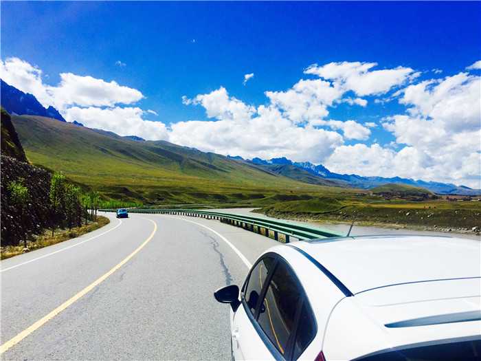 ▼317国道-一路都有连绵的雪山、草甸和流水相伴而行。