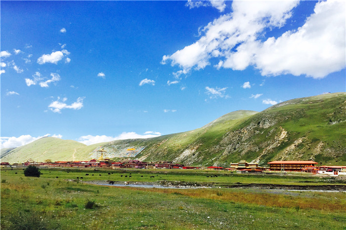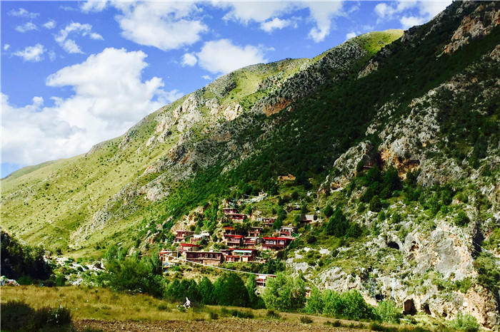 ▼317国道-卡攻乡的喇嘛寺。在藏区,最宏伟的建筑既不是政府,也不是学校,而是这些念经超度的地方。