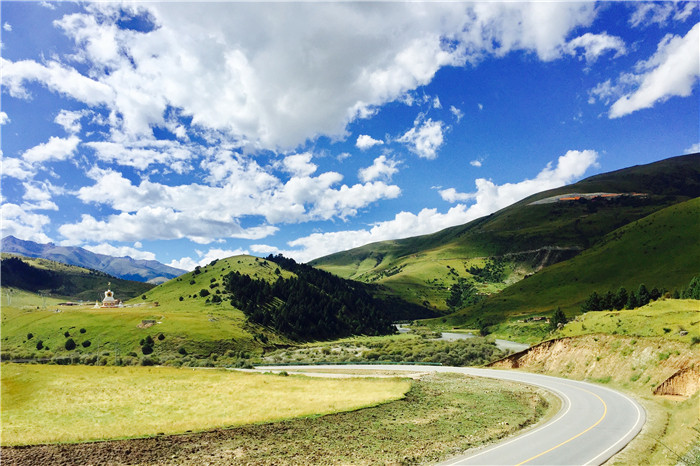 ▼317国道-在藏区,随处都能见到这类覆钵式喇嘛塔。