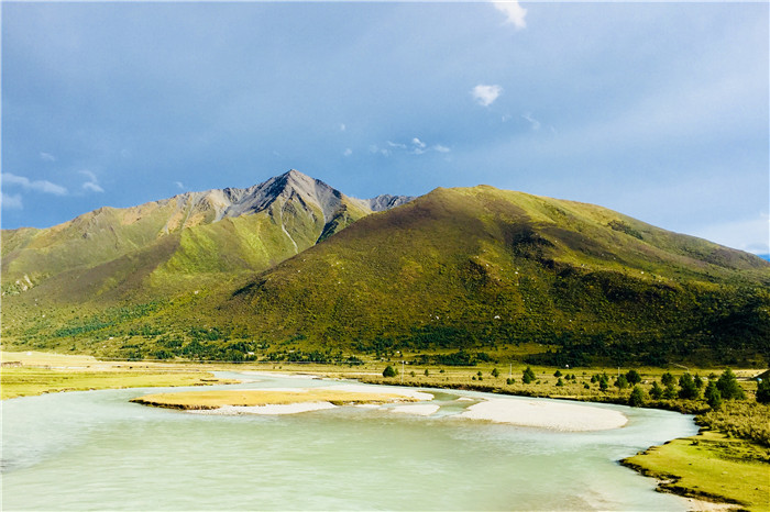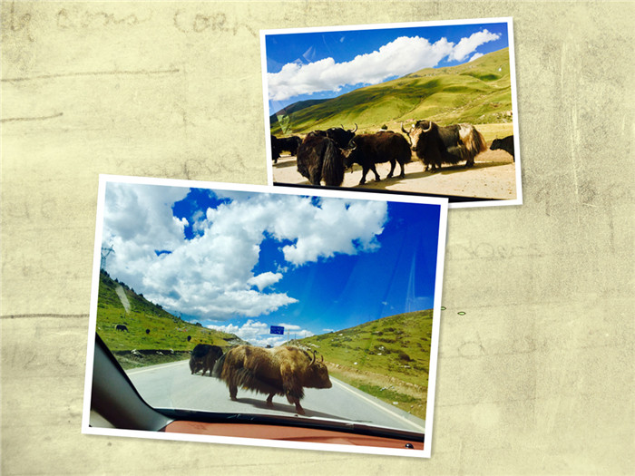 一路前行,从甘孜县到马尼干戈这一路都有连绵的雪山、草甸和流水相伴而行。雪山巍峨,草甸青翠,流水蜿蜒,一幅如画般的山水长卷就这么在眼前徐徐展开。刚入藏时因为没看见四姑娘山幺妹峰的遗憾顿时一扫而空。这一段的国道很好走,双车道柏油路,弯道也少,一脚油门能跑60~80迈,很多时候我甚至都跑到了100。导航不断提示我“行车请礼让斑马线”,尼玛,高原上的路哪来的斑马,只有不断堵在你前方的牦牛。一头两万多呢,你还必须礼让,闯个红灯也才罚两百。