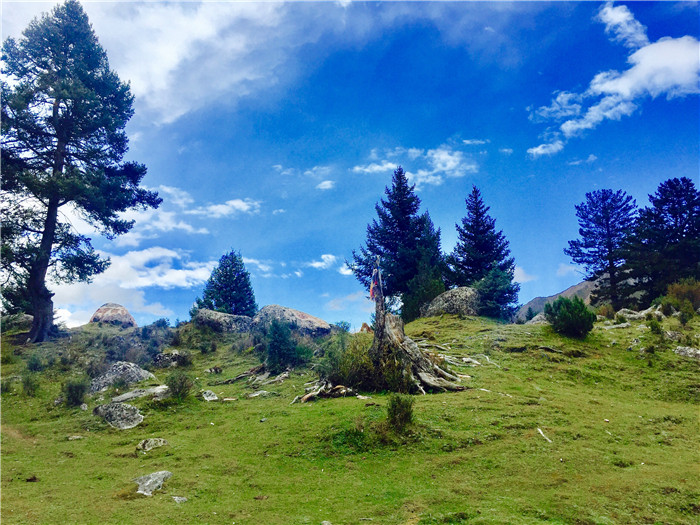 ▼新路海-越过这座土坡,你就能看到静静伫立在雀儿山雪峰脚下宁静的新路海了。