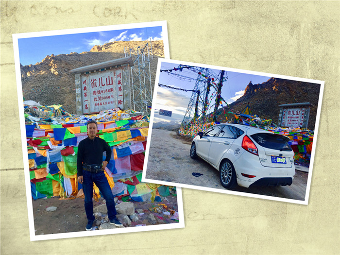 过了马尼干戈镇,一座雄伟的雪山忽而映入我的眼帘,这就是号称川藏第一高、川藏第一险的雀儿山。远远望去,冰舌直入森林边缘,很是壮观。在藏语中,雀儿山也叫绒麦峨扎,意为雄鹰飞不过的山峰,当地居民又称之为措拉。雀儿山主峰山体高大,地形复杂多变,冰川发育完整,主峰海拔6168米,垭口海拔5050米,四周耸立着二十多座五千米以上的雪峰,巍峨壮丽突兀云霄,故有“爬上雀儿山,鞭子打着天”一说。