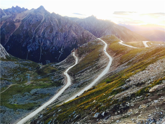 ▼雀儿山-追赶夕阳,在光与影的交错变换中翻山越岭。