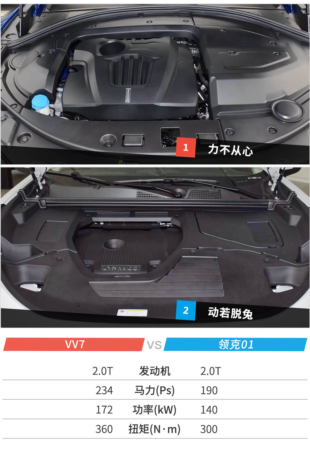 只有把01开起来才能体现到领克家族对于豪华二字的诠释,同为2.0T发动机,马力和扭矩都比VV7要少,可在0-1成绩上要比VV7快了2.2秒,这一切都源自于涡轮的介入时间更早,动力的响应更迅速,与爱信6AT的配合默契十足,在刹车距离上01也是要比VV7优胜,而且脚感更为线性。