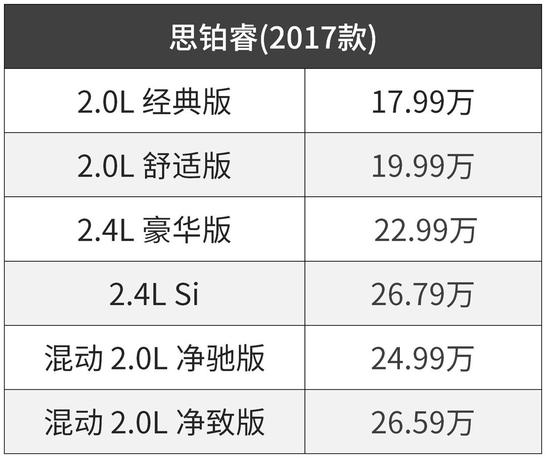 车型可选少,且定价相比雅阁高,终端市场优惠幅度也不大,虽然各方面的硬件不错,但高于雅阁的定价是消费者普遍不能接受的,再加上最新一代雅阁现已上市,思铂睿的换代步伐迫在眉睫。