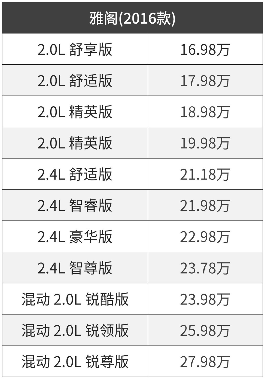 首先是缺少历史沉淀,雅阁车型的历史丰富,一直以来都有着不错的口碑,知名度也更高;