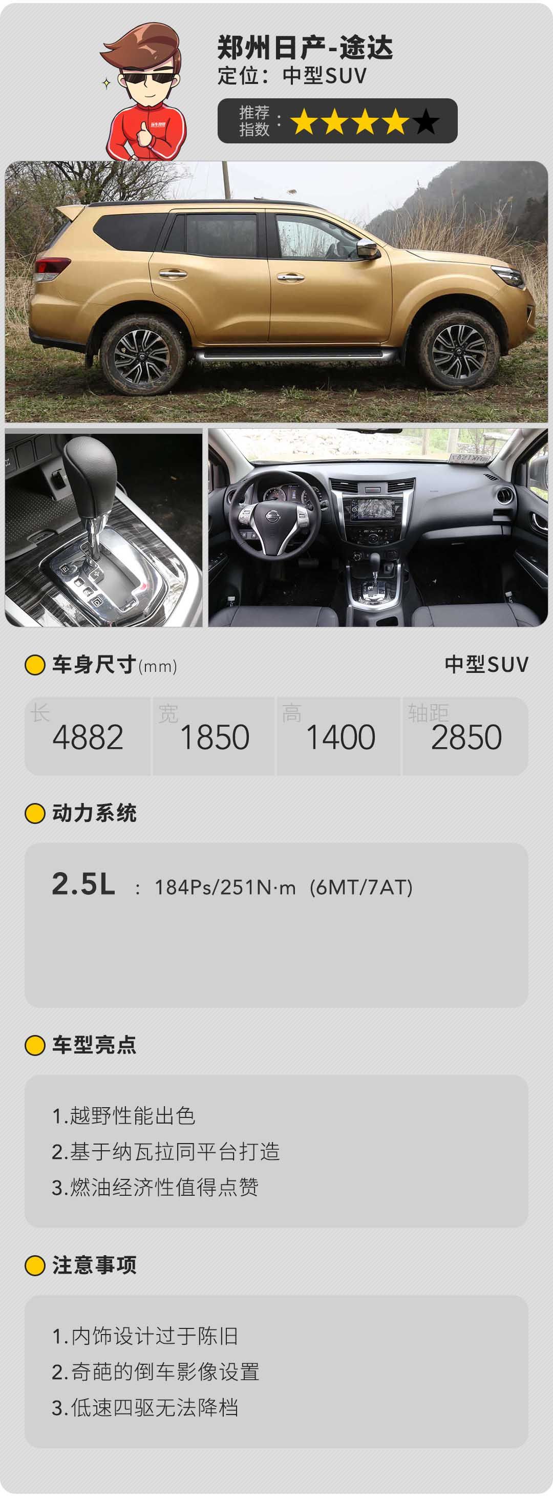途达虽为郑州日产旗下,却和东风日产一起并线销售,但也挽救不了越野车市场表现低迷的窘况,5月份销量只有1365辆。基于纳瓦拉平台打造而来的途达,高头大马的形象与它越野的定位不谋而合,内饰设计就有点上世纪复古feel了,途乐同系列的进口7at变速箱换挡迅速而平顺。低转速高扭矩的QR25发动机,越野车常见的非承载式车身结构,前双叉臂,后五连杆整体桥如数出现在途达身上,出色的接近和离去角高达225mm的离地间隙,都力证途虽远,我必达的宣传口号所言不虚。遗憾的是非承载式车身对市区铺装路面并不友好,低四模式下不能降档。