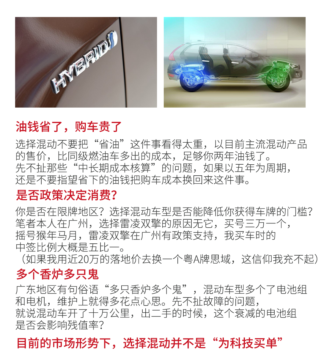 这句话很关键,选择混动产品前,自己先明确一点:除了它,我是否别无选择?先把这几件事想清楚,你对混动产品的认识会清晰很多。