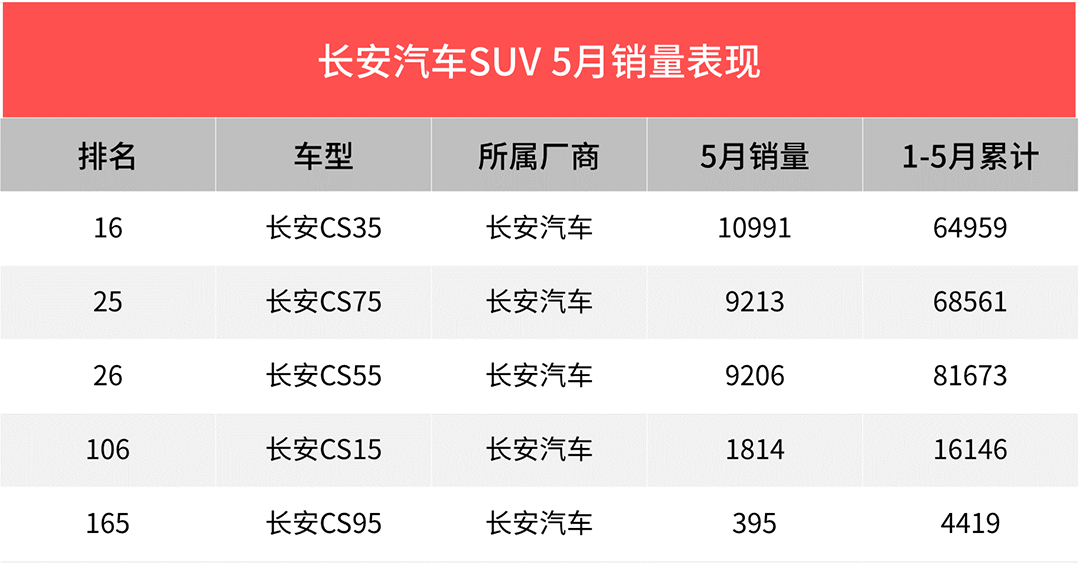 自主品牌阵营里,长安全系SUV都呈现了一种疲态,CS75、CS55两款担任品牌主力的紧凑型销量不破万,旗舰车型CS95更是只有三位数的成绩,唯一破万的CS35也屈居于销量榜十五名开外,曾经能与吉利、传祺等品牌势均力敌的长安现如今似乎显得有些日落西山、英雄迟暮。