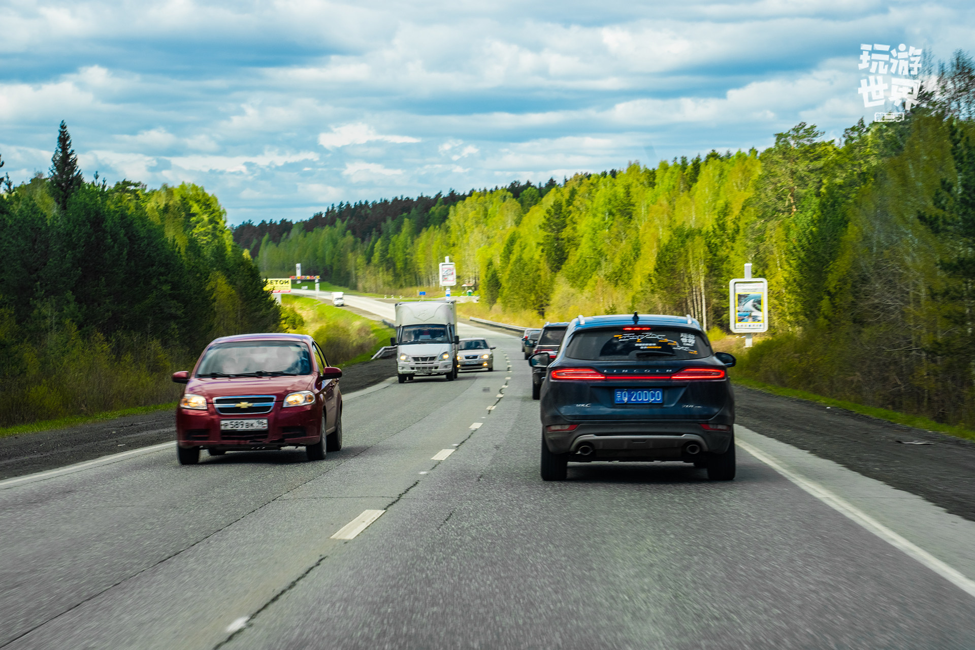 ▲俄罗斯的国道多为单车道,路上大车很多,司机们会自觉跟着大车后面,等到可以超车路段才超车,而大车也会给后车示意超车的时机