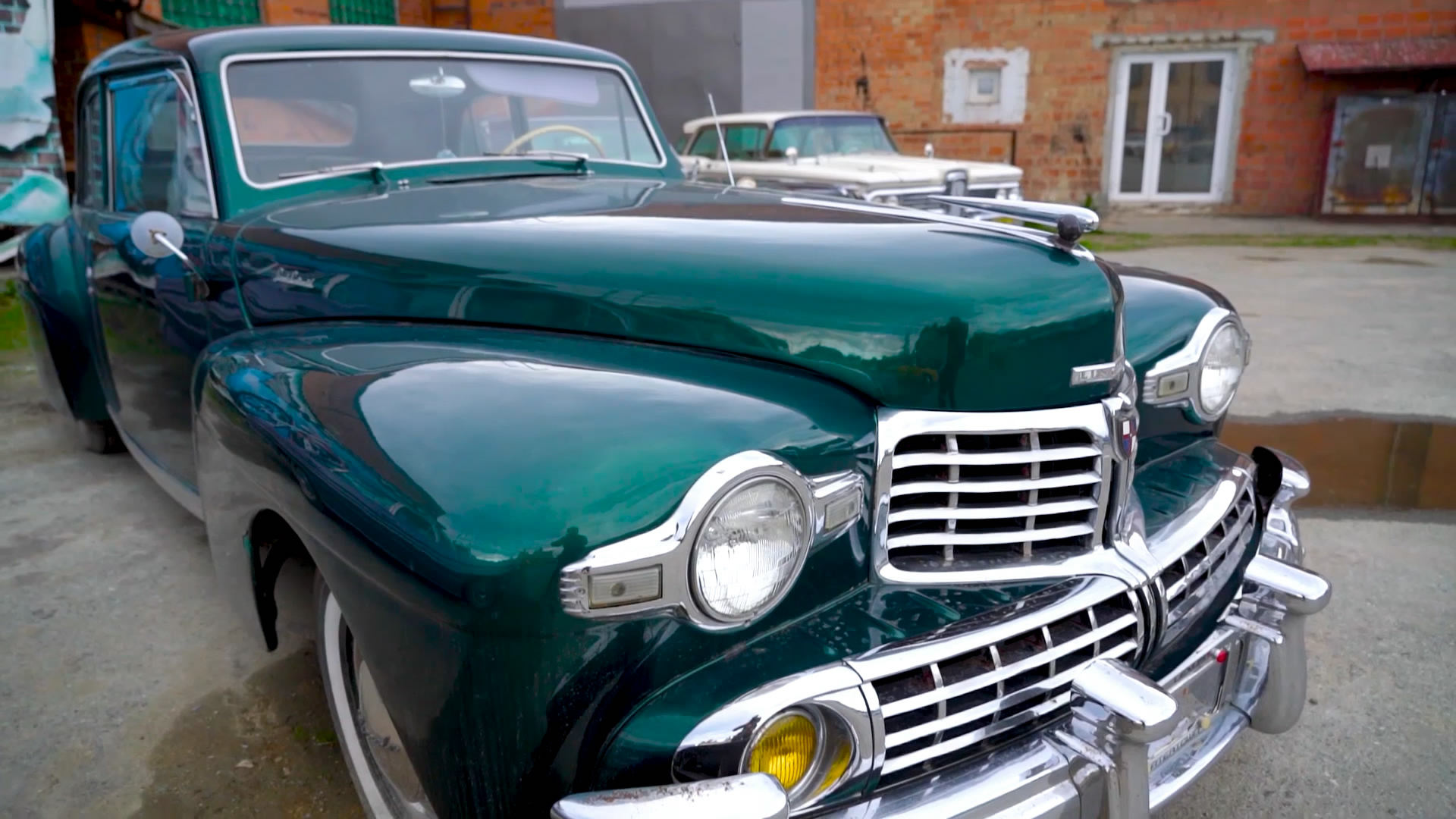 这辆就是二战后重新复产的第一代林肯Continental车型,当年有被誉为“最漂亮的汽车”,前脸非常多的镀铬,造型设计独特,并且配备了V12的发动机。