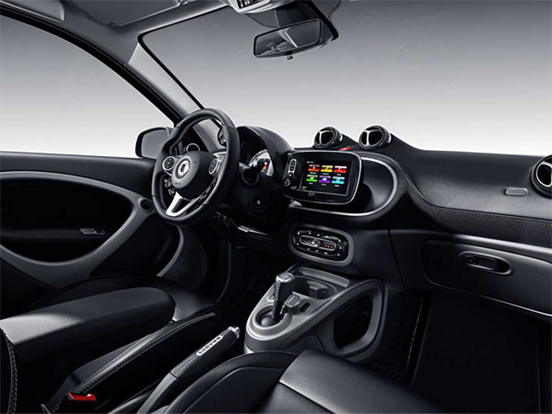 从官网获悉,新车采用了胭脂红色车漆,全系标配全景天窗。三种功率均有专属外观套件,80千瓦车型更是由BRABUS量身打造,配备双色前16英寸、后17英寸BRABUS Monoblock IX轻合金轮圈,运动感十足。内装配置方面,52千瓦车型仅配备音响系统及智能手机支架。此外,黑色运动皮质座椅、JBL音响为80千瓦车型专属。新车将搭载1.0L发动机和0.9T涡轮增压发动机,其最大功率分别为71马力(52千瓦)和90马力(66千瓦),BRABUS版搭载的0.9T发动机最大功率为109马力(80千瓦)。与发动机匹配的将是6速双离合变速箱。