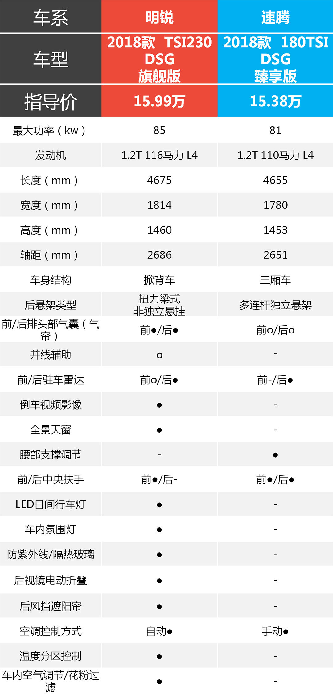 看到销量真的相差太多了,速腾可以说一直骑在明锐的头上,那到底是为什么呢。我们先看看配置表,是否相差甚远。