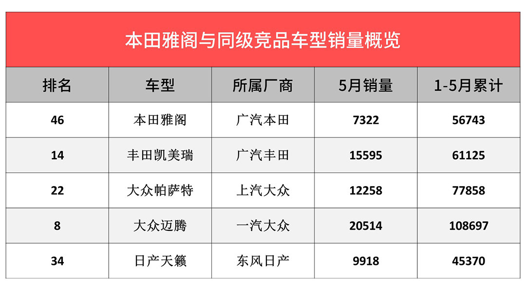 第十代雅阁在五月份正式上市,整体价格区间并不算昂贵,但是五月份的实际销量却不过万辆,确实有些让人感到大跌眼镜;但其实这也正常,第十代雅阁几乎可以说是目前在主流合资中型轿车中革新换代程度最为彻底的一款车型。与竞品凯美瑞行政豪华和运动个性两手抓的方式不同,雅阁几乎以一个纯运动化的姿态进入市场,要知道中型轿车的消费人群有着很大一部分消费者年纪较长,对于运动化轿车的接受程度并不高,这也一定程度上影响了这款价格实惠,动力出众的全新中型轿车的销量。