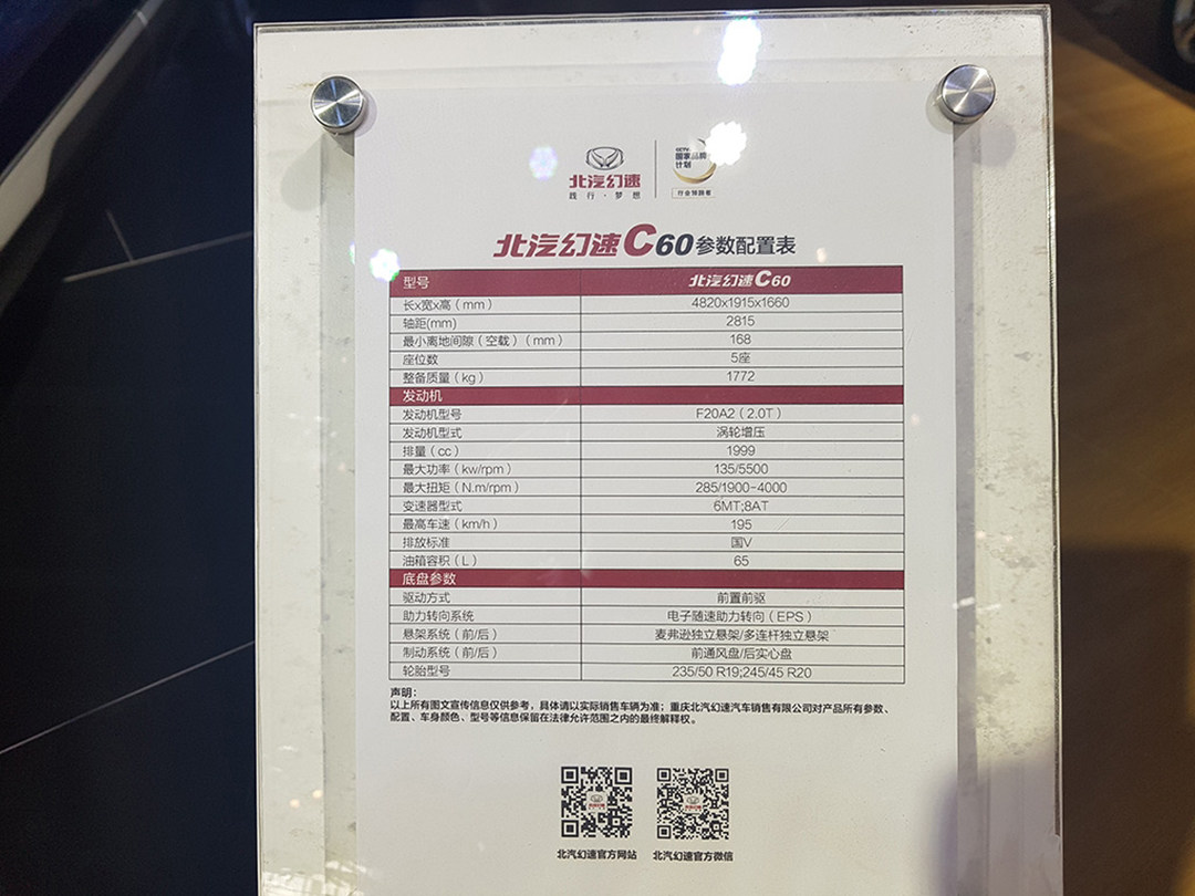 这款车的动力就有点意思了:2.0T+8AT,三菱机头+山东盛瑞自主8AT,很传统很国产。具体好不好开还不知道,但在技术上已经有了一定创新,虽然在设计上这车一看就是要赚快钱,但具体配置上至少较之前的北汽幻速还是有了一定的突破。