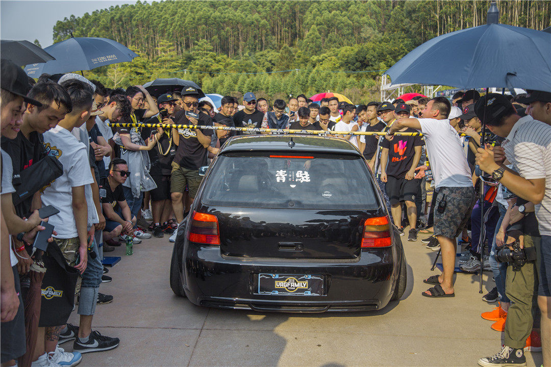 但现场最引人注目的要属声浪比拼、酷车低趴钻杆