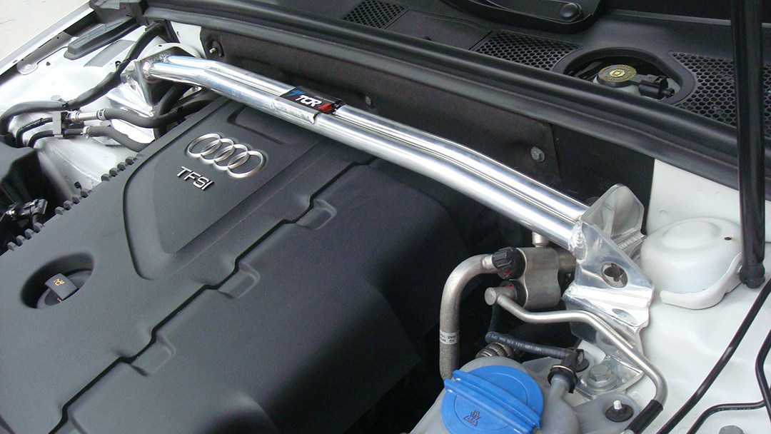 顶吧,也就是安装于前悬挂塔顶之间的加强连杆,用于将前悬挂塔顶硬性相连,提高车架刚性,在激烈驾驶时能够对减少车架形变、提高车身姿态反应速度带来一定的帮助;由于此部件安装于引擎舱顶部,且英语中连杆的对应单词为“Bar”,与“吧”读音相近而得名。