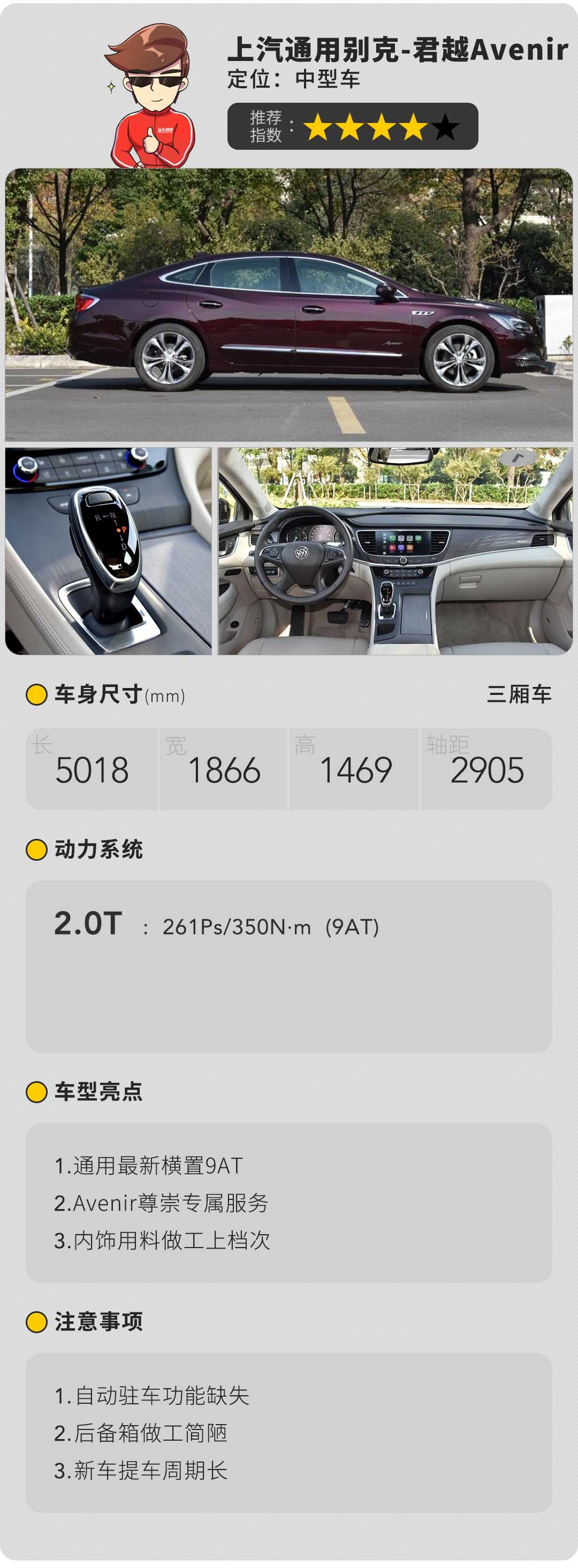 不同于大众的泯然众人矣的千篇一律外观,通用在外观设计方面大胆求变,车型自带不属于这个级别应有的豪华的气场,在顶配的君越AVenir版上尤为明显,寓意优雅祥瑞的伯爵紫外衣,专属立体菱形交织而成的网状格栅,由量变到形变的优雅过度,专属的19吋皇冠铝合金轮毂与表冠有异曲同工之妙。专属的菱形内饰面板遍布座椅,中控,车门饰板独具匠心。车顶的鹿皮绒面顶衬烘托出典雅之色的同时对NVH的控制大有裨益。