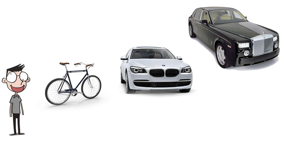 然后如果你打算顶配中型车,然后你又发现可以买到其他中大型车了。。。。然后就会陷入加钱——升级——加钱——升级的循环,最后你就会变成网上的一个段子,本来是去看自行车的,看到最后看劳斯莱斯去了,然而发现身上只有两千块,驾照还没考….
