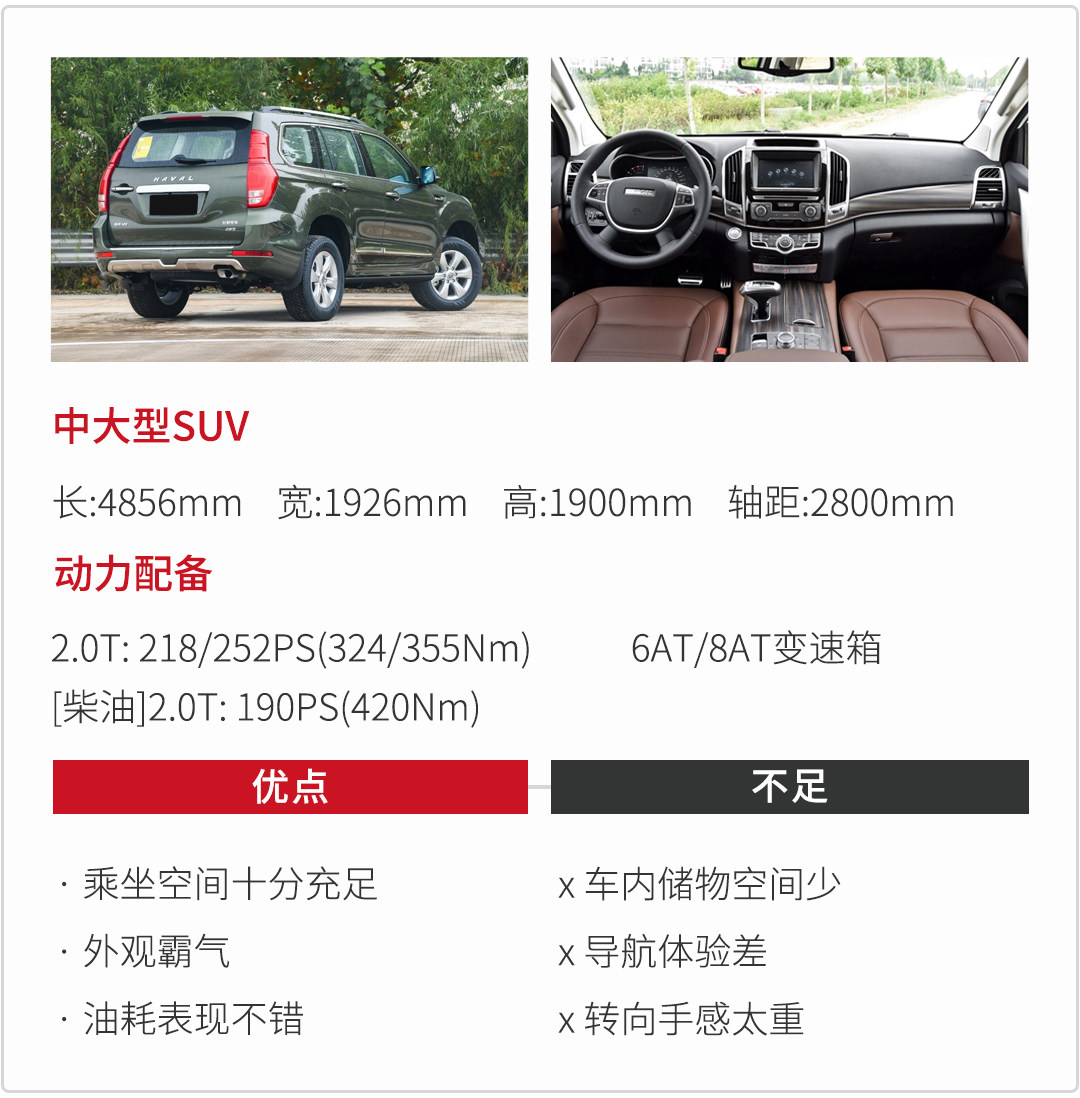 如果你认为哈弗H9和以上所说的荣威RX8、传祺GS8、长安CS95是一样的,那就大错特错了。哈弗H9这款车更多的是面向越野路面,是比较纯真的硬派越野车,至今还有车型配备柴油发动机。外观看上去气场虽然很大,乘坐空间也足够大,但实际驾乘表现比较一般。
