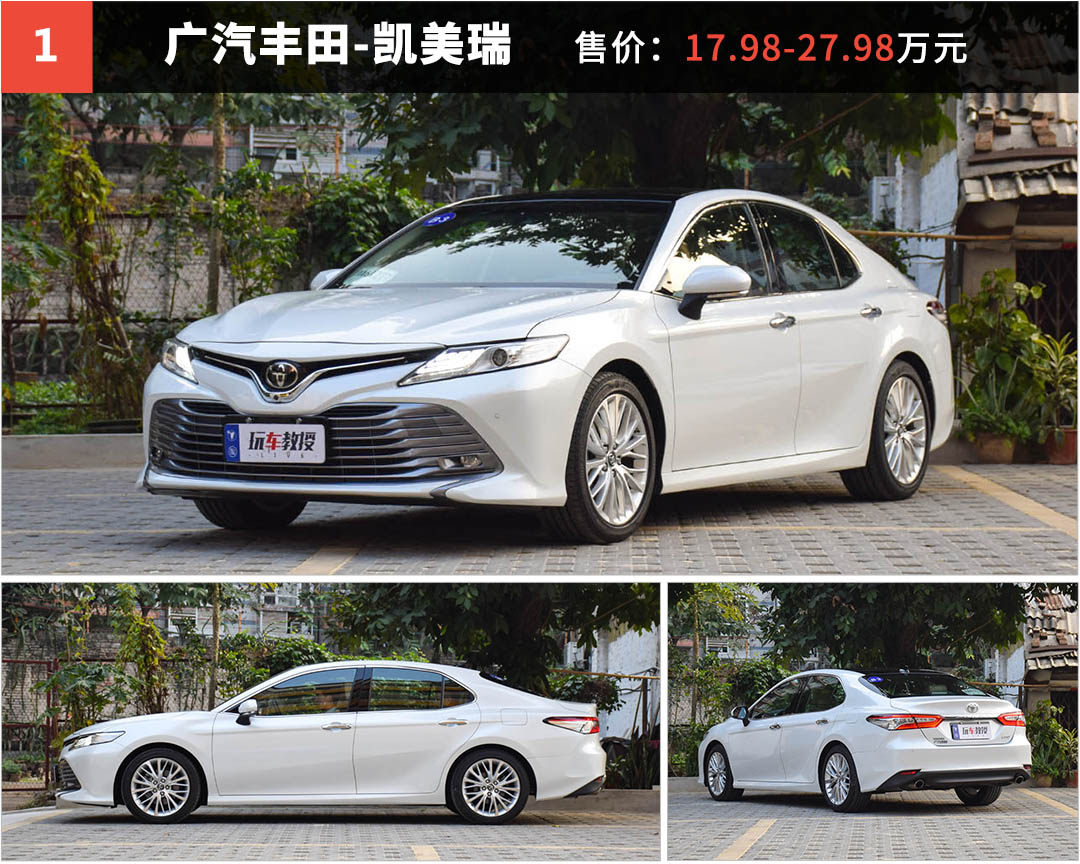 首先找来的是好评度极高的凯美瑞作为普通合资品牌中型轿车代表。作为丰田在华销售首款TNGA架构下的车型,凯美瑞一改老款沉闷中庸的外观,摇身一变成为动感型男年轻了不少。