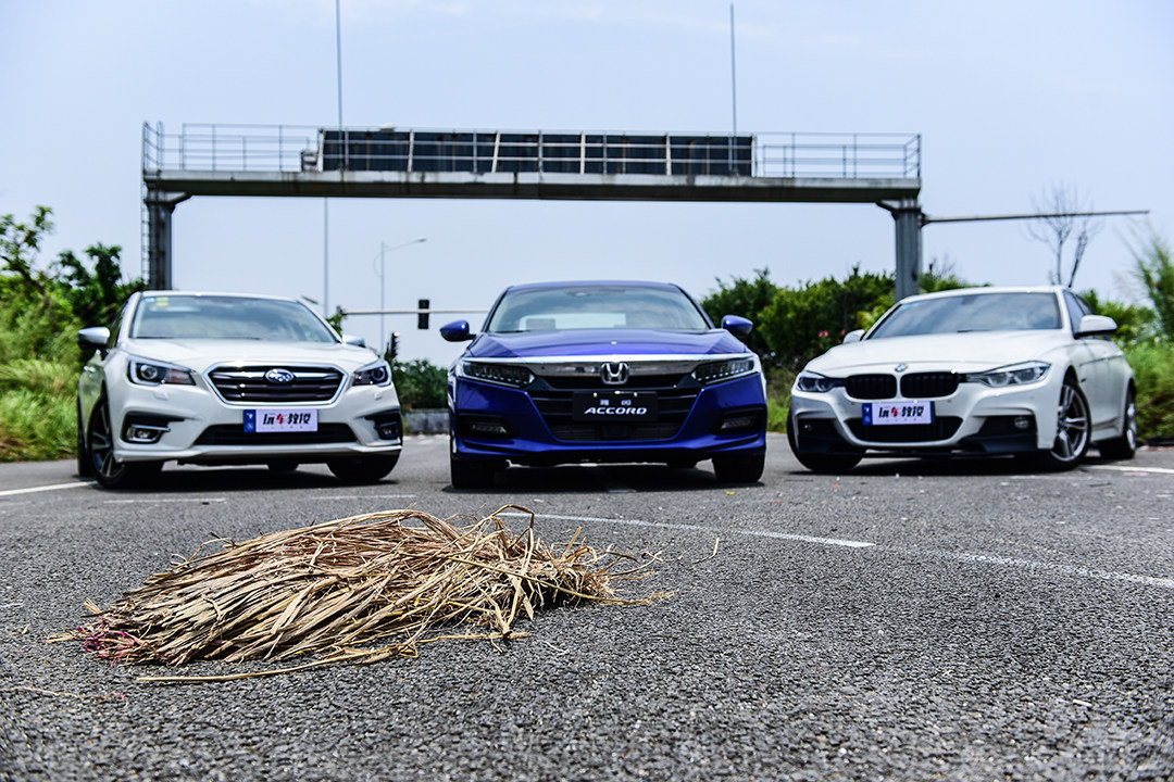 我们找来了三辆驱动形式不一样的车型,分别是前驱的本田雅阁、后驱的宝马3系以及拥有全时四驱的斯巴鲁力狮。