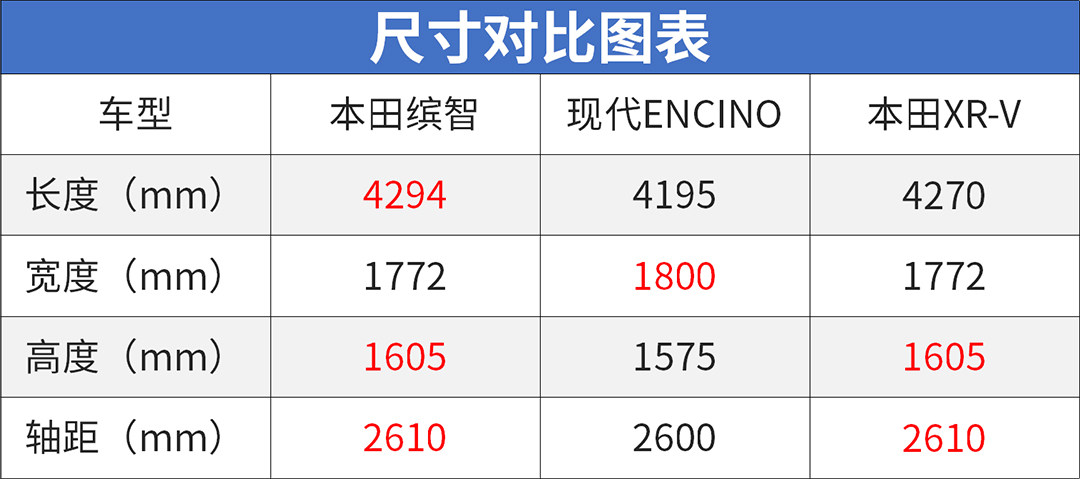 ENCINO虽然定位于小型SUV,但是实行的是”小型SUV紧凑型化“战略,从车身尺寸、轴距来看,ENCINO非常接近其竞争对手本田XR-V以及缤智,不过细数下来还是XR-V和缤智要稍胜一筹。