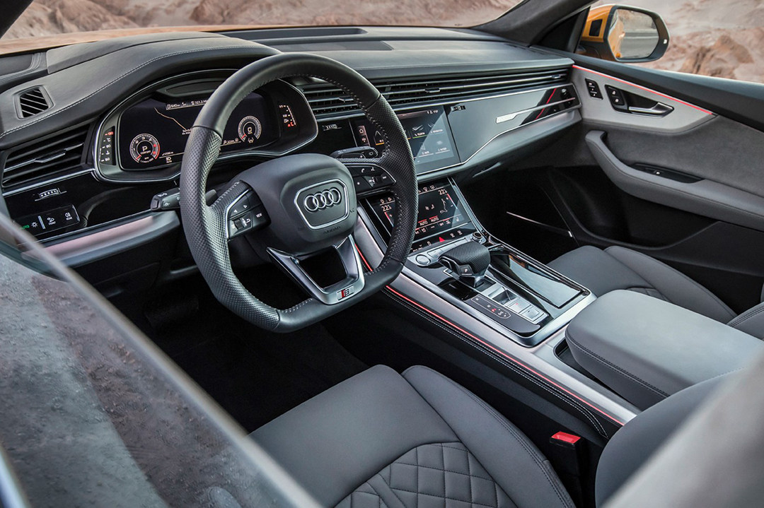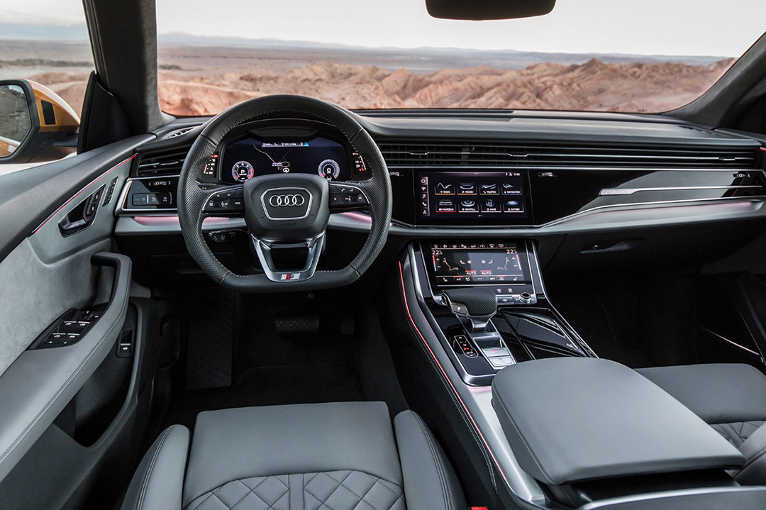 如果您曾经乘坐过奥迪A6、A7或者是A8,您会觉得这套内饰相当熟悉,内饰大体方面是相似的。它们都是采用了奥迪最新的虚拟座舱式设计,除了全液晶仪表盘这块大屏幕,中控上还加入了两款尺寸不小的屏幕,上方10.1英寸屏幕是用作显示导航、媒体等内容,下方稍小的8.6英寸屏幕则是用作显示空调以及繁多的驾驶辅助功能,它们的操作也如视觉般惊艳,显示细腻并且响应迅速。回到内饰本身,Q8使用大量高质量木材以及皮质营造出卓越的豪华感,就如奥迪A8一般,它会继续和宝马X6、奔驰GLE COUPE之流玩内饰质感的游戏。