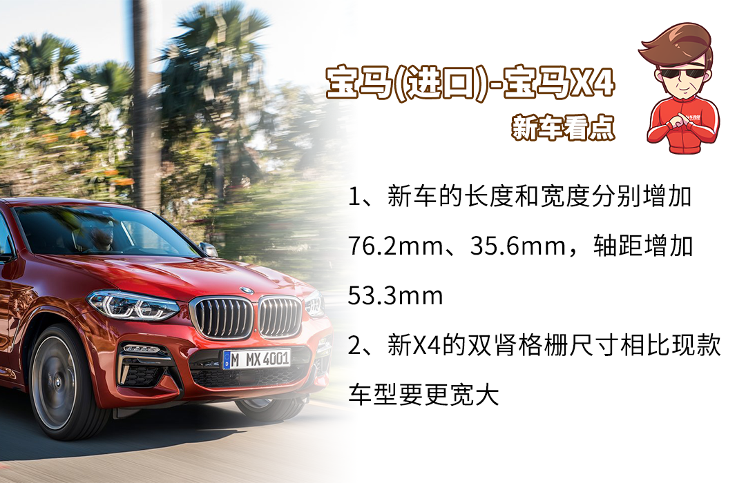 作为一款换代车型,宝马X4最大的改变或许要数它的设计,由内到外都利用了新的家族设计,跟新宝马X3很相似,而其本身的轿跑SUV风格并没丢失。新车还有配备了12英寸仪表盘、10.25英寸多媒体显示屏、运动座椅、全景天窗、三区自动空调、自然语音识别系统等较为全面的配置。而售价方面,教授估计或许会与现款车型相当,并不会有多大的变动;进口车身份、偏贵的售价,注定了宝马X4依旧是少数人的大玩具。
