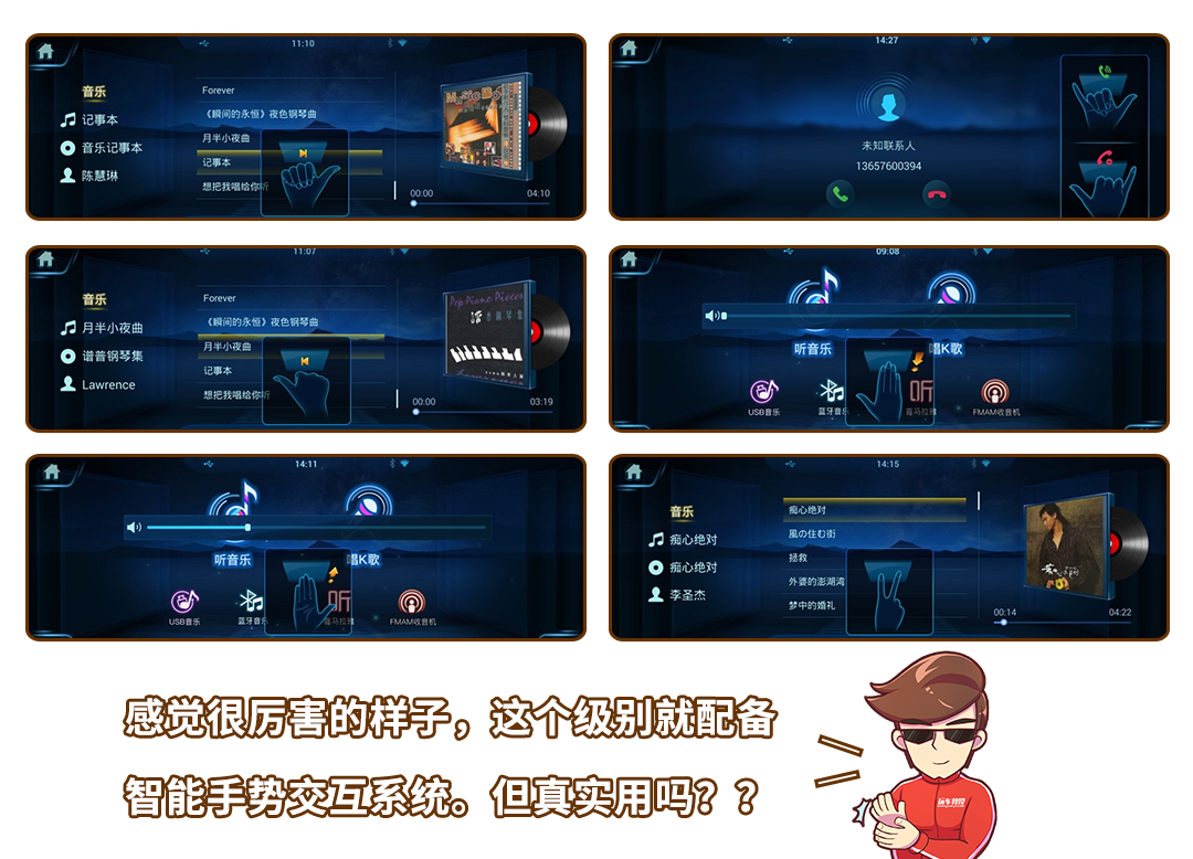 上面说的这些其实都不算君马SEEK 5的重要看点。官方将其定义为智能座驾,那么在智能科技方面的确得做出一些噱头。新车除了配备悬浮式液晶中控屏、全液晶仪表等目前主流的配置,还配备智能手势交互系统,主要集中在多媒体系统的控制方面。该项功能在目前汽车市场中使用并不广泛,君马SEEK 5很可能是同级别唯一一款售价在15万以内、配备智能手势交互系统的车型,教授表示期待该功能的实际体验。