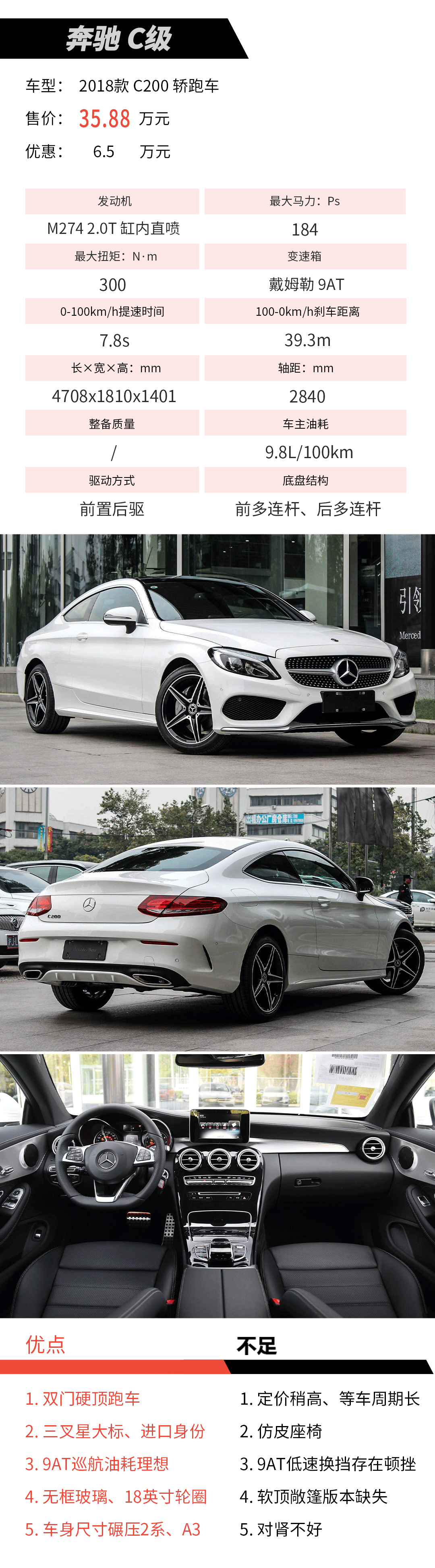 但进口身份、BBA品牌加成、双门飘逸身段、无框车门等诸多体面元素,会让你悉数接受诸多不足。高效费比的把妹神器,让你跃身夜店意见领袖。选双门Coupe,迎娶白富美。