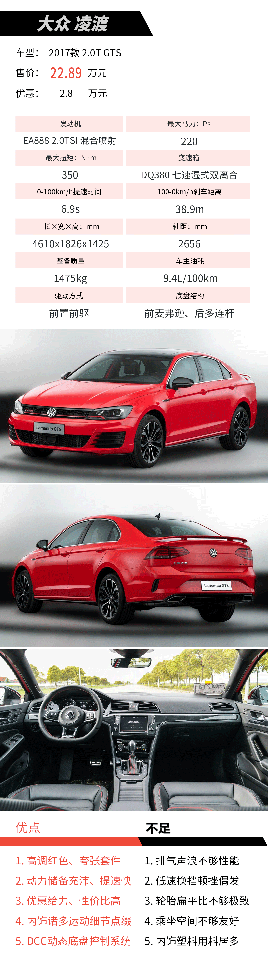 除此以外,凌渡GTS还可选装DCC底盘控制系统,可调节减振器阻尼设定与转向机力度从而提供不同驾驶感受。与高尔夫GTI一样,凌渡GTS同样配备配备XDS电子差速锁,有效抑制内侧驱动轮打滑,改善前驱车转向不足的短板。