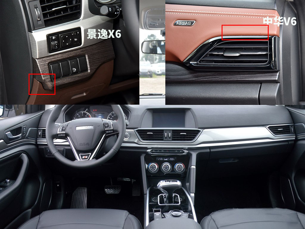 为了公平起见,教授选取三辆车的价格都为10万左右,分别为哈弗红标 1.5T自动两驱精英型、景逸X6 1.5T CVT尊享型、中华V6 1.5T豪华型。虽然说是同样的价格,但是哈弗H6的配置要好一点,除了比另外两车多了前排侧气囊外,还有多了自动空调;景逸X6是没有无钥匙进入的;中华V6没有电动天窗;至于其他配置差异倒是不大。