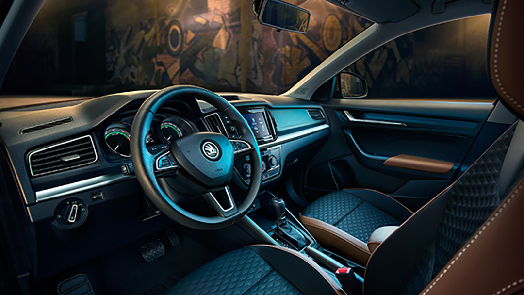 全车设计精彩的地方,则是采用了直瀑式进气格栅、水晶切割设计的三维大灯以及侧面三维雕塑感腰线等斯柯达家族特征设计,均得到淋漓尽致的展现。车身多处采用镀铬饰条装饰,并配备了17英寸双色铝合金轮圈。车身尺寸方面,柯米克车身长宽高分别为4390mm、1781mm、1593mm(增加行李架后的高度为1606mm),轴距为2610mm。