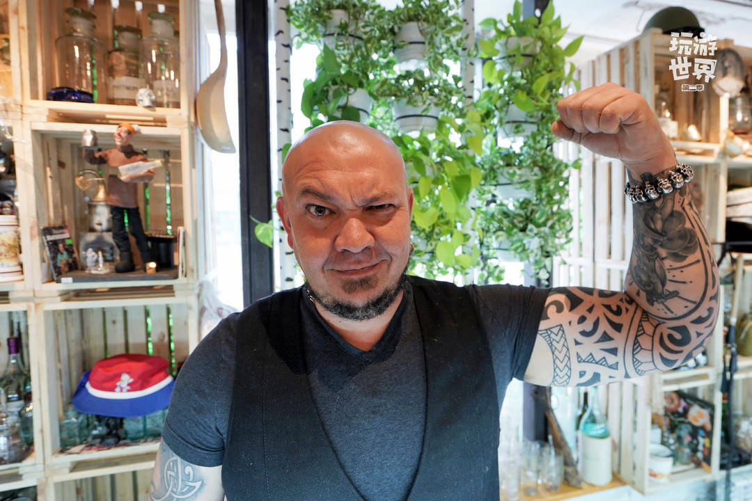 ▲在一家工艺品店里看到了一位“大力士”,看似很彪悍,实际上他对我们非常热心肠