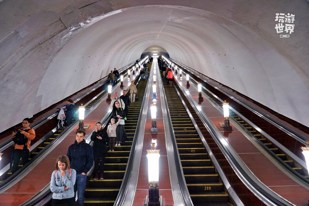 所以莫斯科地铁都是深入地下五六十米,甚至超过一百米也不稀奇,厉害的是莫斯科地铁的通风系统做得很好,一进地铁就微风拂面,很是舒服。