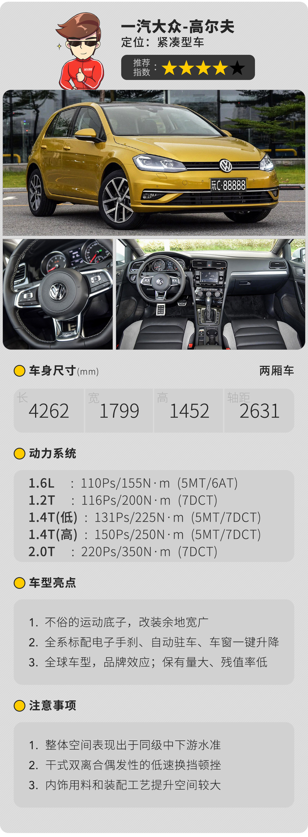 高尔夫可谓世界汽车市场的大众情人,无人不晓的全球车型。自1974年面世至今,高尔夫已推出7代车型,销量巨人有足够底气衍生众多车型,如高尔夫·嘉旅、高尔夫Alltrack、高尔夫GTI、高尔夫R、高尔夫R旅行版等。