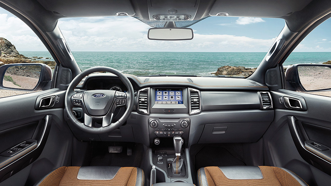 就外观而言,它更像是F-150以及撼路者的混合产物。从F-150上继承而来的高大身躯,车身尺寸为5355*1860*1848mm,轴距达到了3220mm,可以说是F-150的小弟。宽大的六边形进气格栅、哑光黑装饰的保险杠、后视镜以及进气格栅上的“ranger”字样都是从F-150上学习而来。