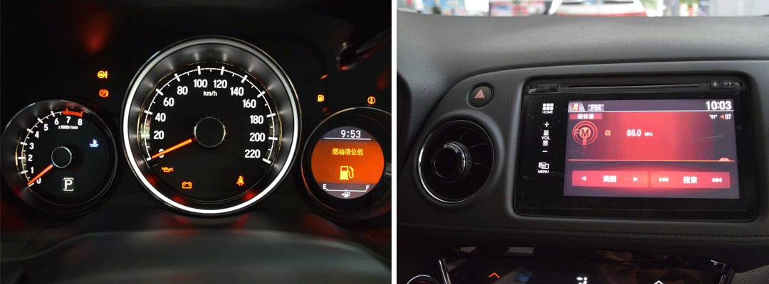 进入到车内,我们能明显感觉到本田XR-V的内饰设计更倾向运动化,圆筒型的空调出风口,非对称式的中控台设计动感性很足!在中控台的中部采用了一些软性材质,用料还不错。