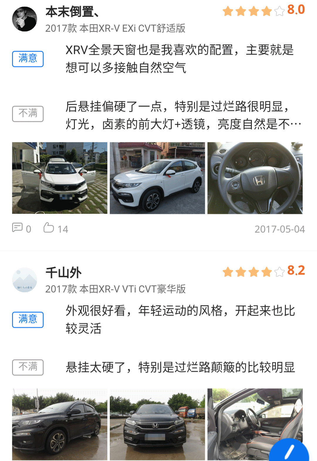本田XR-V具备了不错的乘坐空间,本田营造空间的能力毋庸置疑。而且动力方面值得大家多加关注,用户们普遍对它的动力输出深感满意!而且油耗也表现挺好,偏运动的底盘设定和灵敏的转向带来了一定的乐趣,要注意的是它偏大的噪音和非独立后悬在舒适性方面并不强。