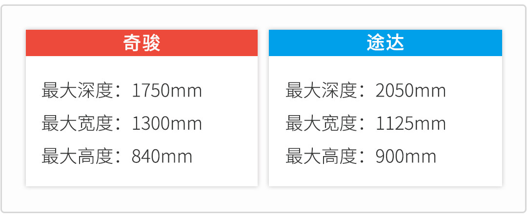 如果乘坐空间一致,那么后备厢空间就绝对不同了,两车除了前排,其他座椅都放倒的情况下,途达的后备厢深度明显更大,最大高度也更高,不过宽度稍微比奇骏窄,但综合而言,还是途达的后备厢空间会更大些。