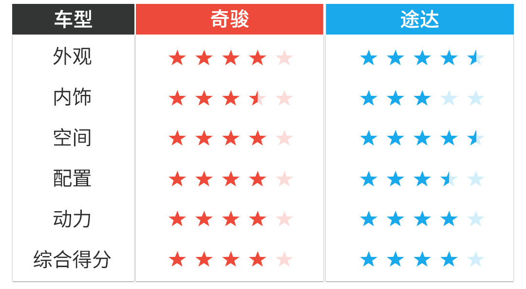 最后的结论,其实和我们一开始说的一样,奇骏更适合一般家庭在城市地区的用车;而途达则更适合经常要走拦路或一些越野路面的消费者,而且在此前的许多媒体评测中,途达的越野能力还是非常出色的。目前奇骏刚上市不久,暂时没有优惠信息,但是作为一款性价比已经这么高的车型,日后是否会提供终端优惠真的不得而知,所以想入手的,其实已经可以交定金了。