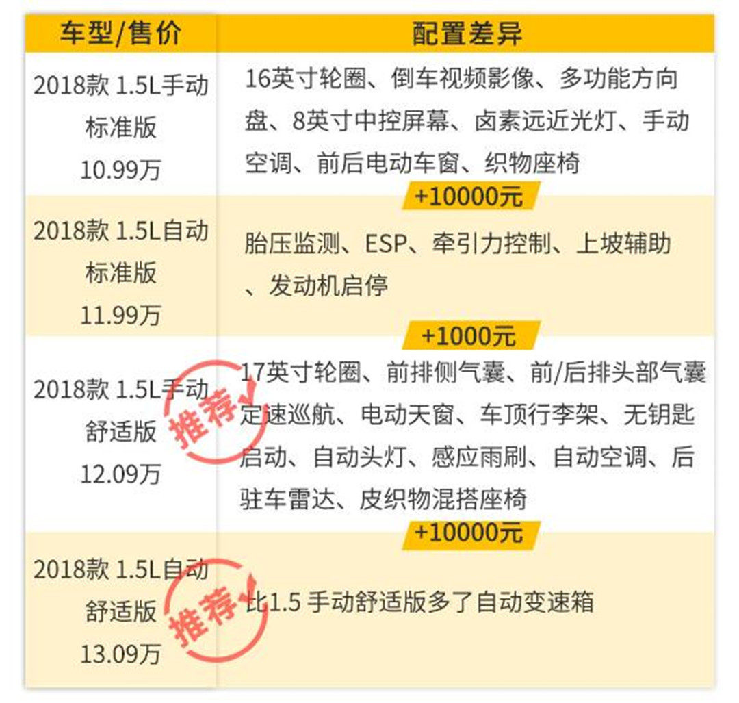 顶配车型与手动舒适版车型区别在于,用1万元买一个自动变速箱,你问我值不值得,如果你尝试在上下班高峰期,高速堵车时,你就会明白一个自动挡是有多重要,朋友,为了你的左脚健康着想,自动挡你值得拥有。