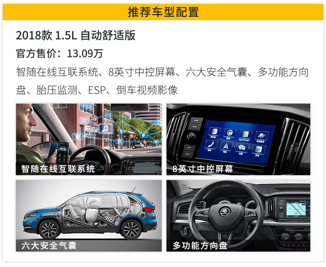 斯柯达和大众车型丐版多数都是用来拉低价格门槛,所以在考虑时可以第一时间PASS,两个舒适版会是性价比最高的车型,比标准版多1万,你可以得到17英寸轮圈,定速续航,电动天窗,前排侧气囊,前后头部气囊等配置,在安全性,便利性方面都要上了一个台阶。