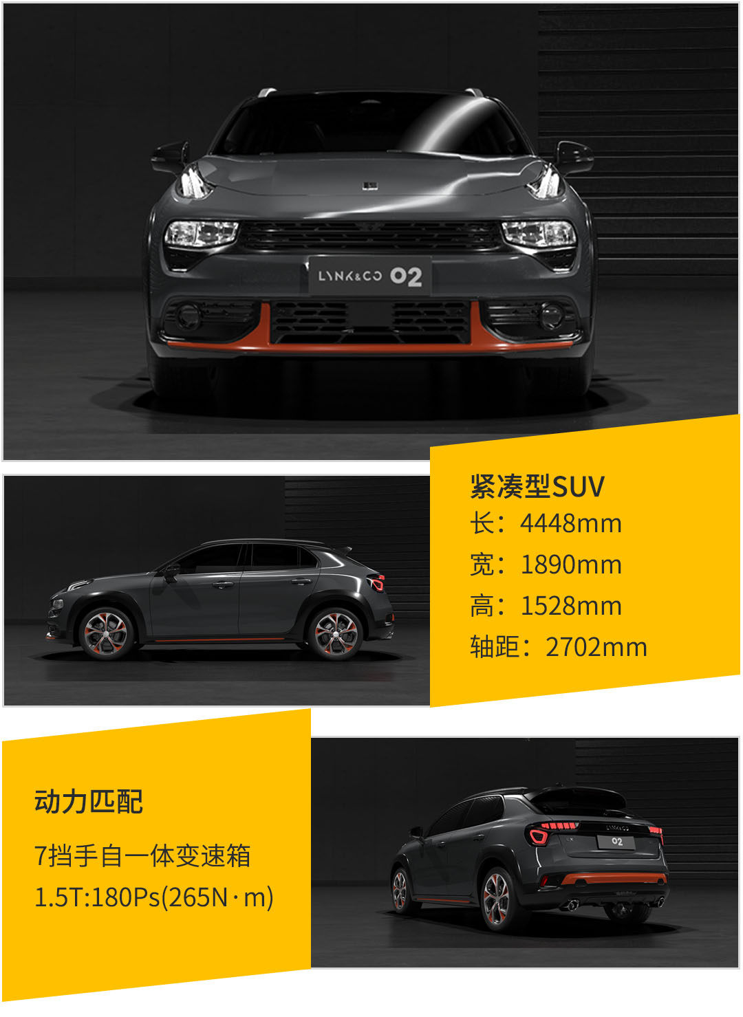 就从外观来看,个人还是比较喜欢“劲”系列的,虽然轮圈的样式没有另外两款那么个性,但是整体相对协调,而且车身可选的颜色也比较多,但这个还是见人见智吧。整体来看,领克02的外观设计就是一辆拍扁了的领克01,设计语言几乎一致,但实际呈现的效果要更年轻,更动感。